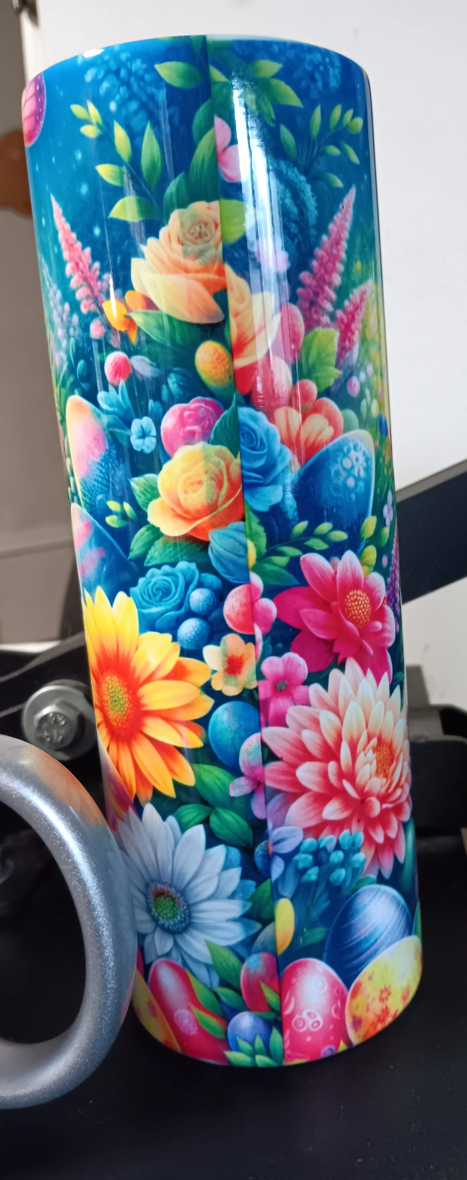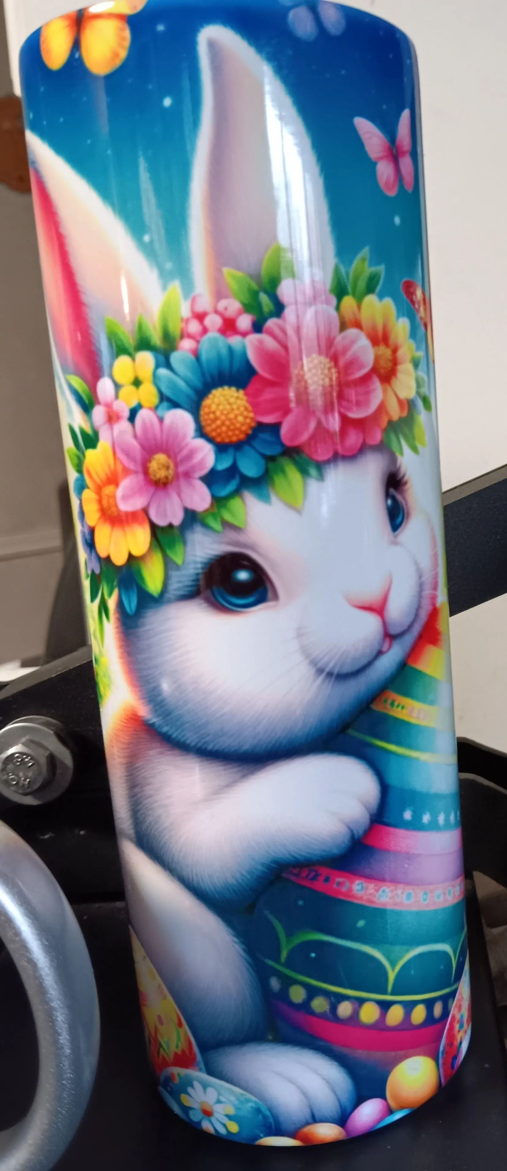 20 oz. Metal Tumbler with plastic lid and straw.